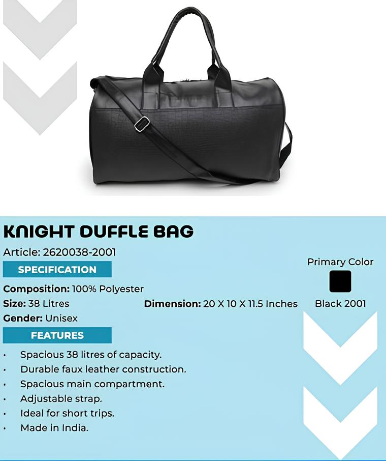• Durable Faux Leather construction• Spacious Main Compartment• Adjustable strap• Ideal for short trips